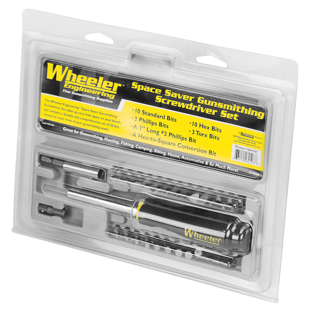 Il Set di Cacciaviti Space-Saver Wheeler è meno della metà delle dimensioni dei set di cacciaviti per armieri comparabili, ma offre un insieme durevole e completo di 26 punte scelte per soddisfare la maggior parte delle tue esigenze di gunsmithing. È anche della dimensione perfetta da portare con te durante le tue uscite al poligono o in campo.