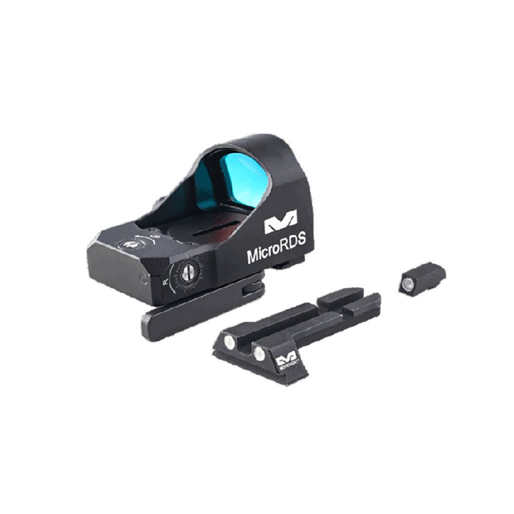 Il Mepro microRDS porta l'acquisizione rapida del bersaglio di un'ottica red dot per fucile di dimensioni complete in un mirino compatto per pistola. Dotato di un innovativo kit di adattatori a sgancio rapido (QD) che si monta facilmente utilizzando la slitta del mirino posteriore esistente della pistola; non è necessario forare, filettare o rivolgersi a un armaiolo.